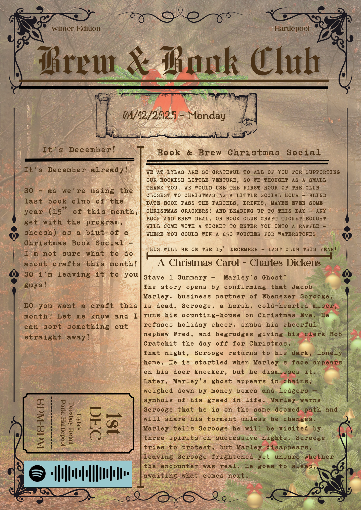 We are excited to announce our weekly Brew & Book Club at Lylas. Based on customer feedback this will be a community focused book club! We welcome you to pop on down every Monday, with a book, for a cozy time!!
